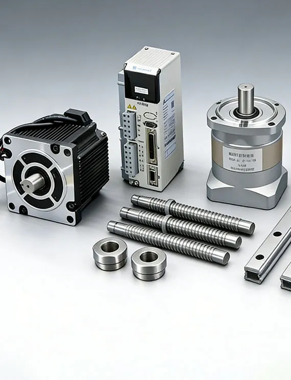 linear guides, ball screws, stepper and servo systems, spindle motors and related accessories